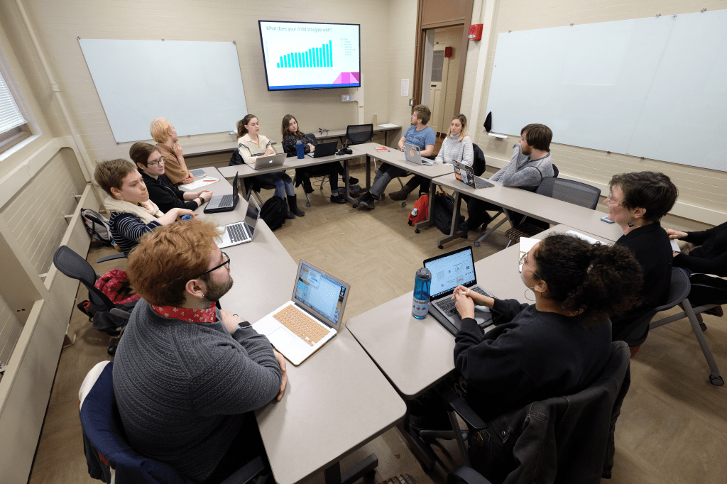 More than 90% of our students work outside the classroom in faculty labs. Research ranges from understanding how metaphors shape our understanding to the neurological underpinnings of suicidality and self harm to understanding how peers can support academic success in underprivileged youth.